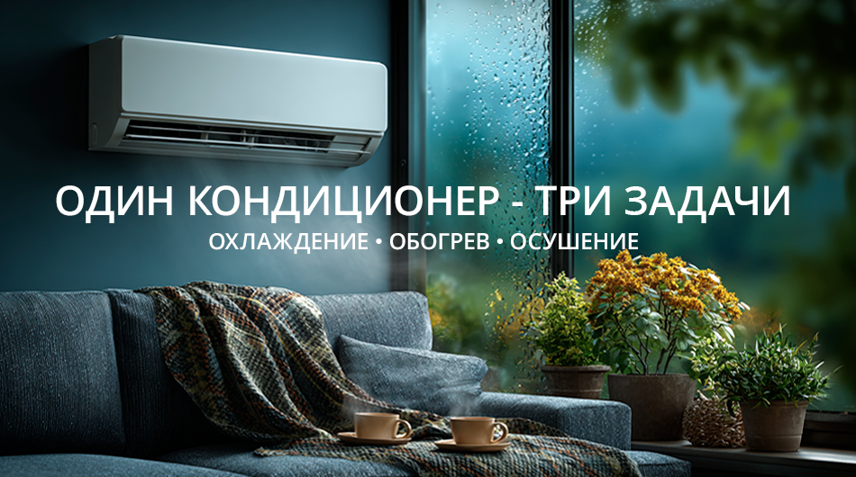 инверторный кондиционер как раз про это. Он решает три ежедневные задачи: охлаждает, обогревает и осушает воздух. Без сложностей и лишних кнопок — просто